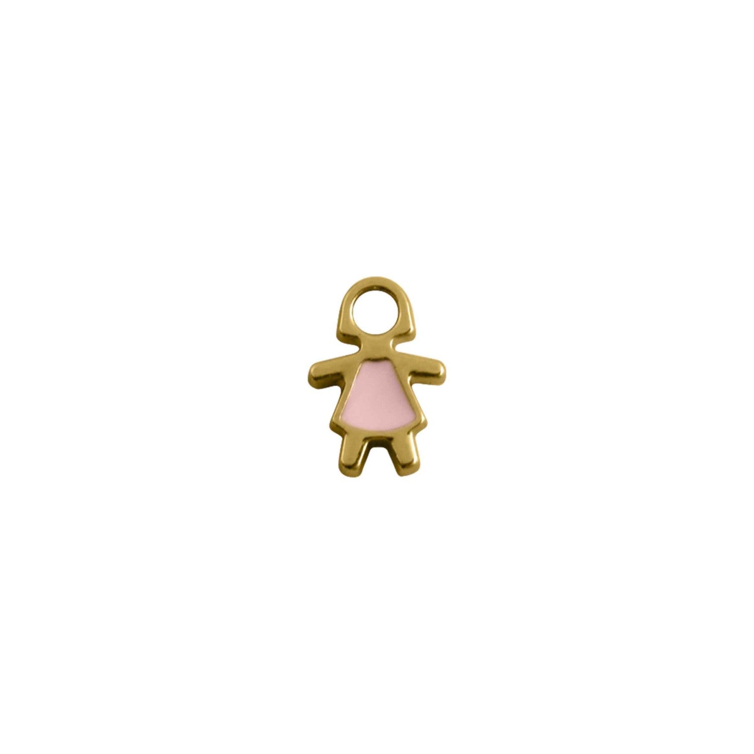 Pingente em formato de menina com detalhe rosa representando laços familiares.
